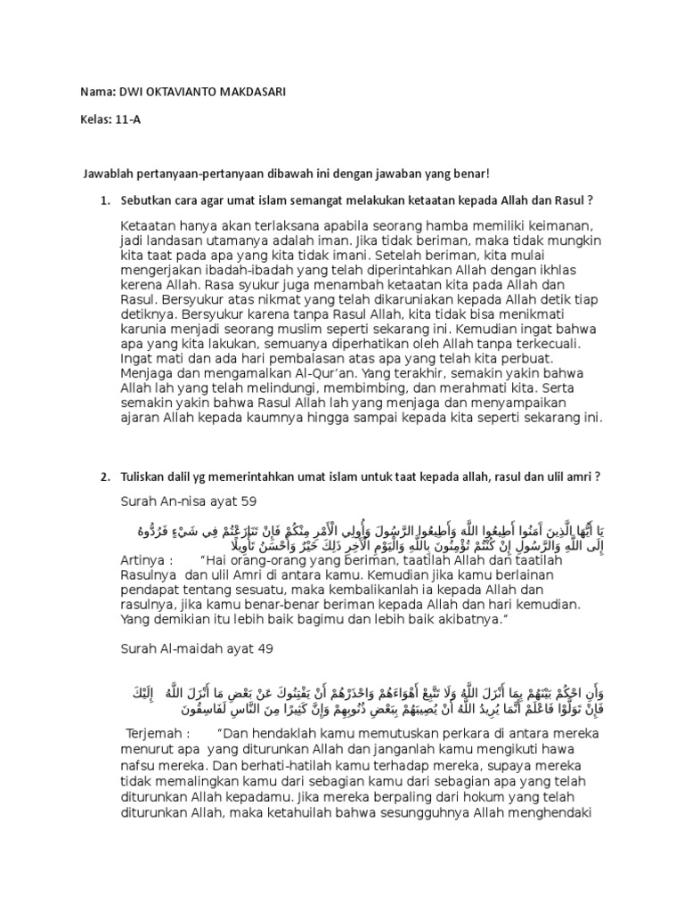 Contoh Soal Essay Pendidikan Agama Islam (Pai) Kelas Xi Semester 1 Beserta Tanggapan Part-3 | sch. paperplane