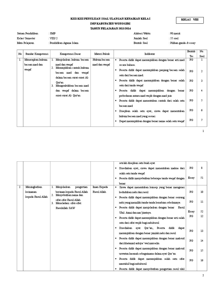 DOC) Soal uts akidah akhlak mts sa balaraja | sueb rizal - Academia.edu