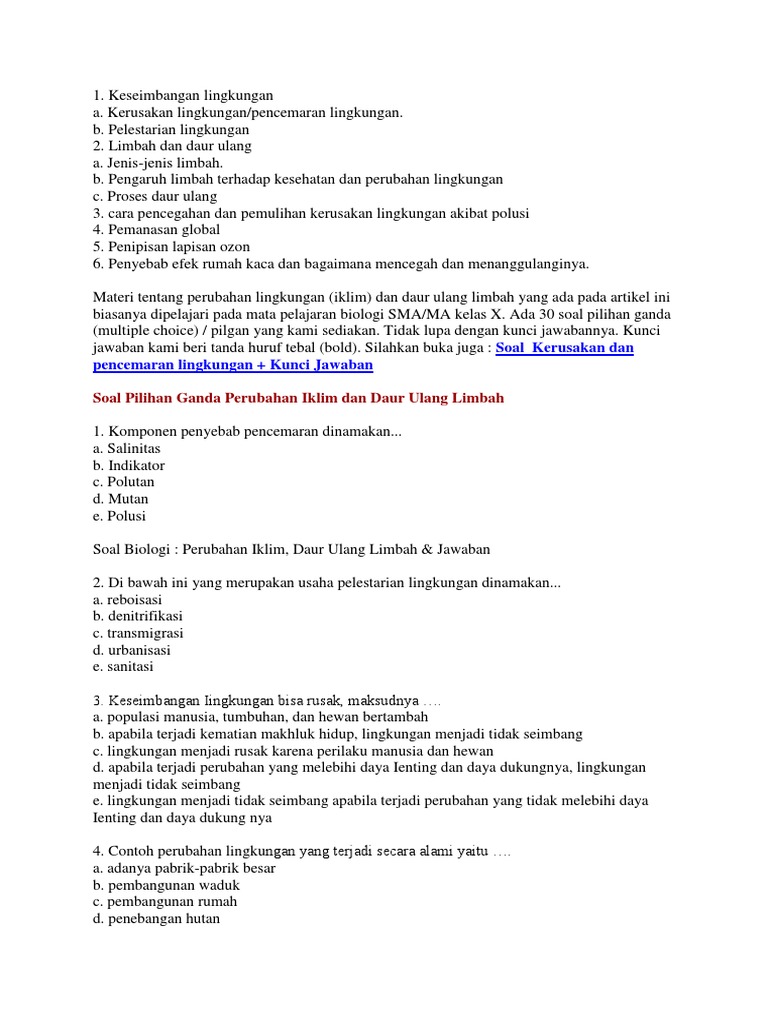 Soal Dan Jawaban Pencemaran Lingkungan
