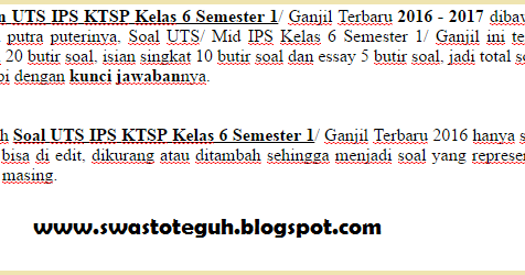 Soal Ulangan UTS IPS KTSP Kelas 6 Semester 1/ Ganjil Terbaru 2016 …