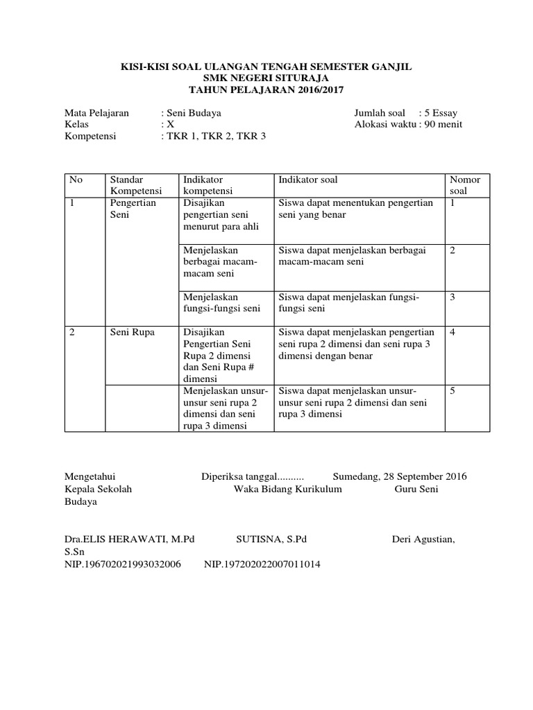DOC) Soal UAS Seni Budaya Kelas X 2016-2017.docx | Rahmad Ramadlan - Academia.edu