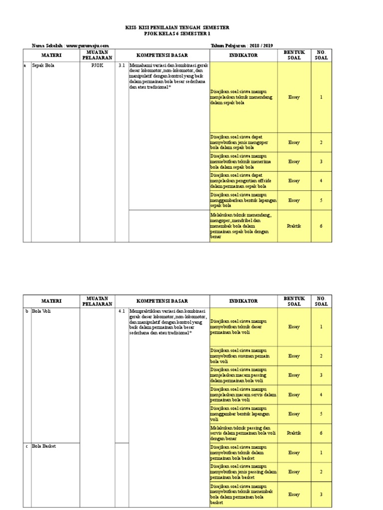 KISI KISI PAS PJOK KELAS 6 (www.gurumaju.com).xls