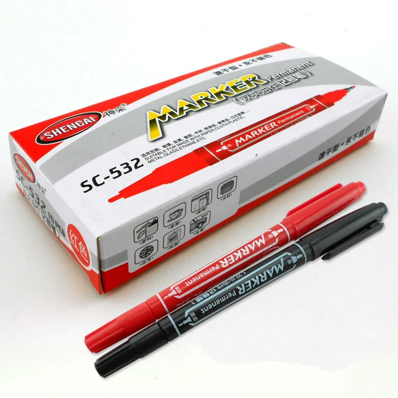 10 pcs Ganda sisi warna spidol Permanen tinta biru merah kain hitam untuk CD logam kaca Alat Tulis kantor sekolah DB875|marker pen tinta|pena permanenmarker pen - AliExpress