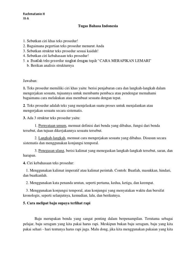 A. tentukan struktur dari teks prosedur tersebut!B.temukan ciri kebahasaan yang terdapat pada teks - Brainly.co.id