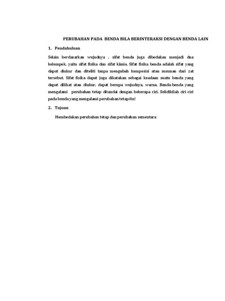 DOC) Faktor faktor yang mempengaruhi perubahan sifat benda …