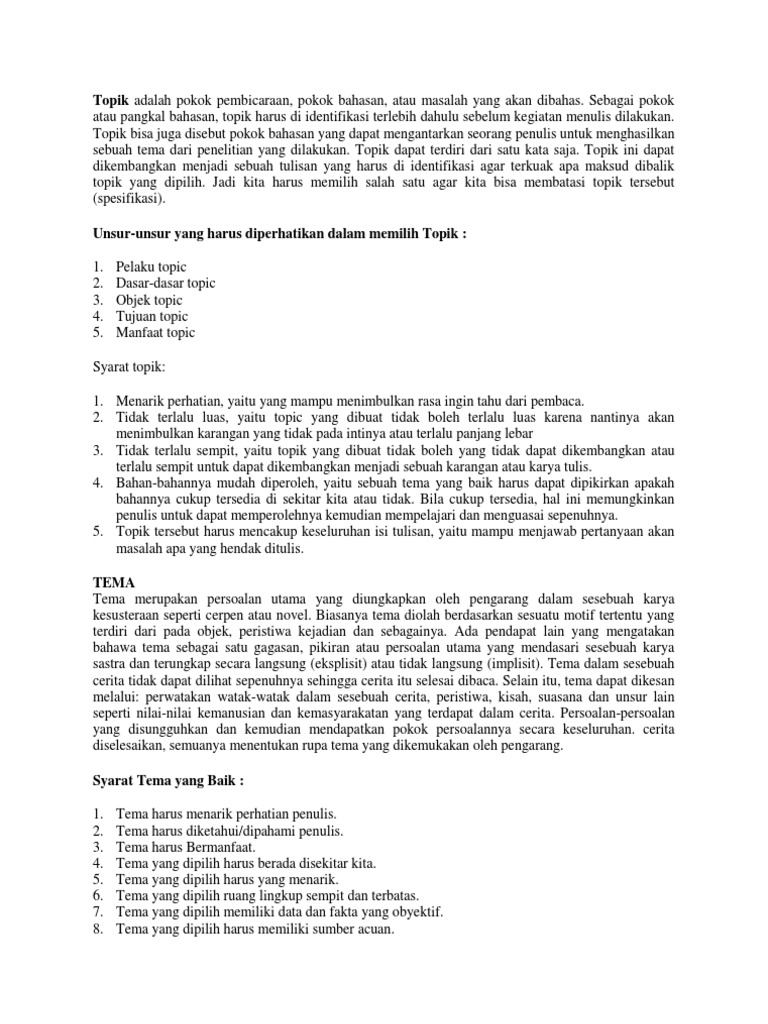 DOC) Tema, Topik, Judul, dan Kerangka karangan | Rahmatullah R. - Academia.edu