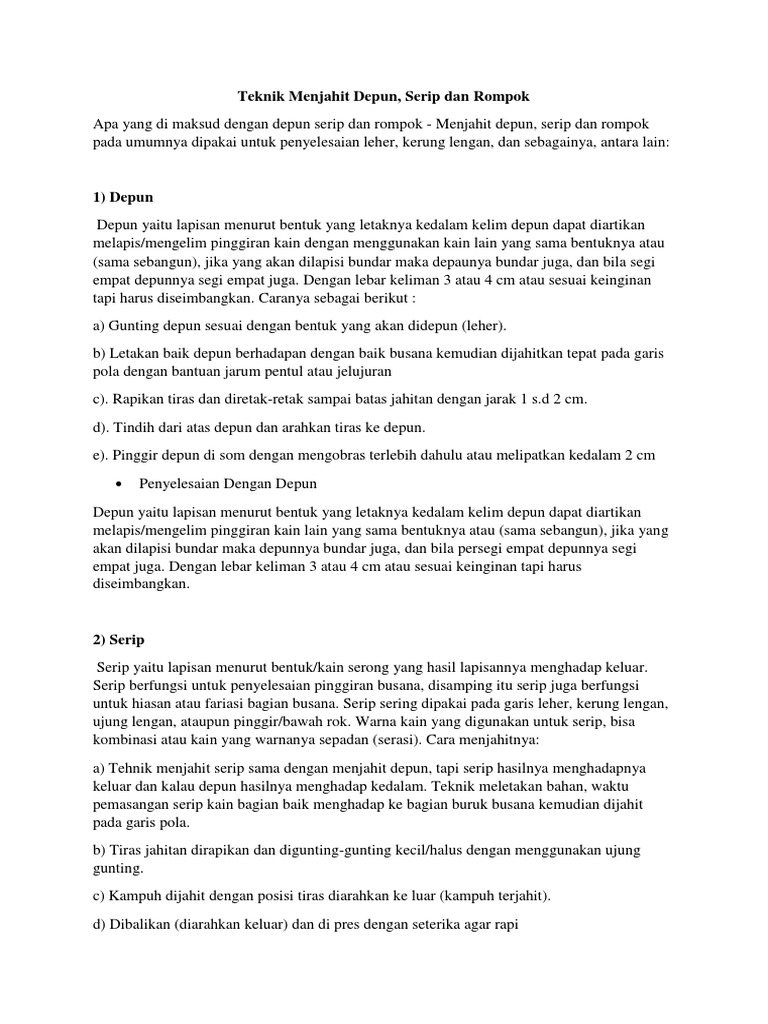 DOC) Teknik Menjahit Tepi Pakaian | Delia Permata - Academia.edu