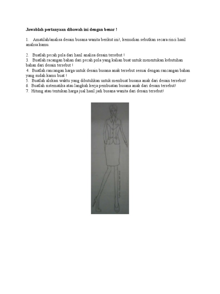 Soal Produktif Tata Busana (Pembuatan Busana Costume Made) Kls Xi Tb Njang