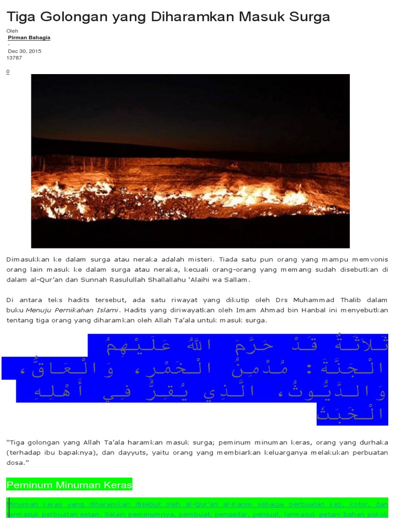 Tiga Golongan Yang Diharamkan Masuk Surga