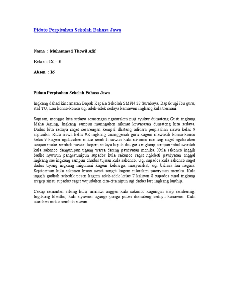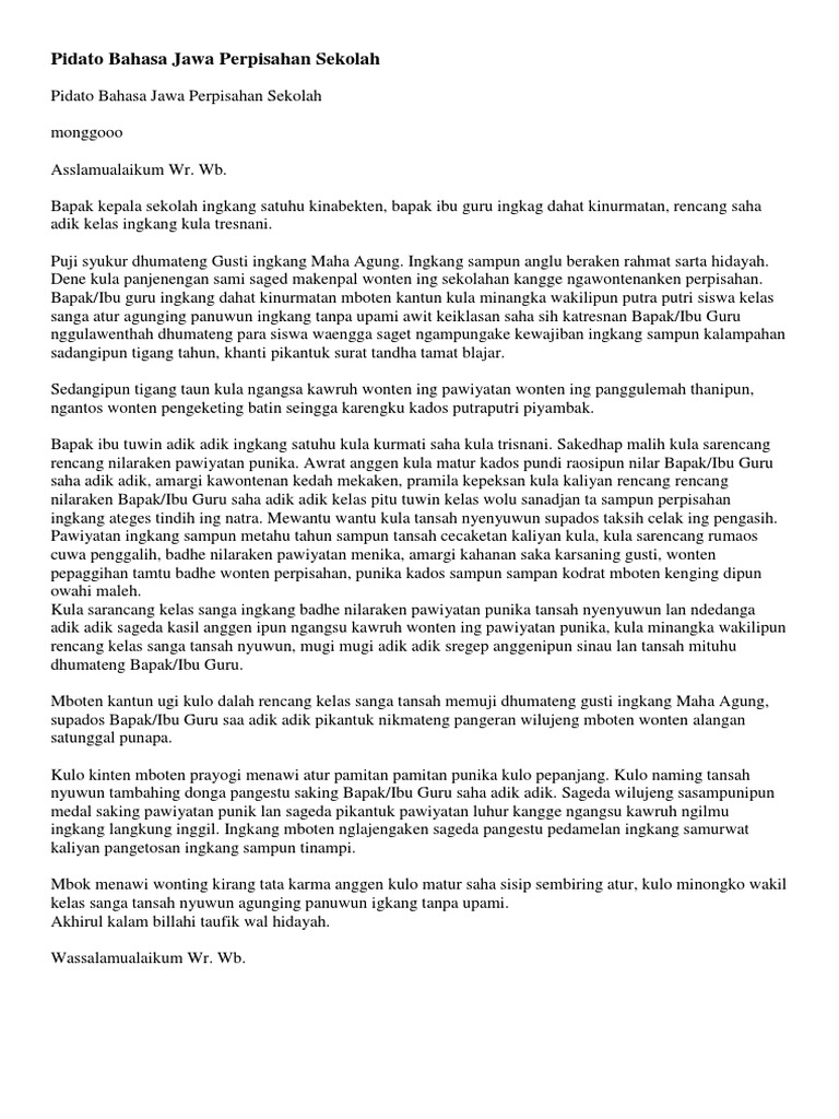DOC) Contoh Pidato Singkat Bahasa Jawa Perpisahan Sekolah | wahyu purnomo - Academia.edu