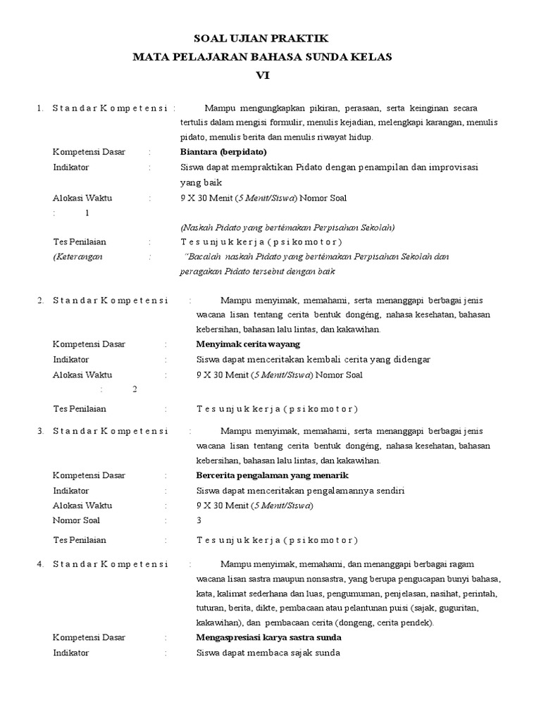 Soal Ujian Praktik Basa Sunda Sd Vi