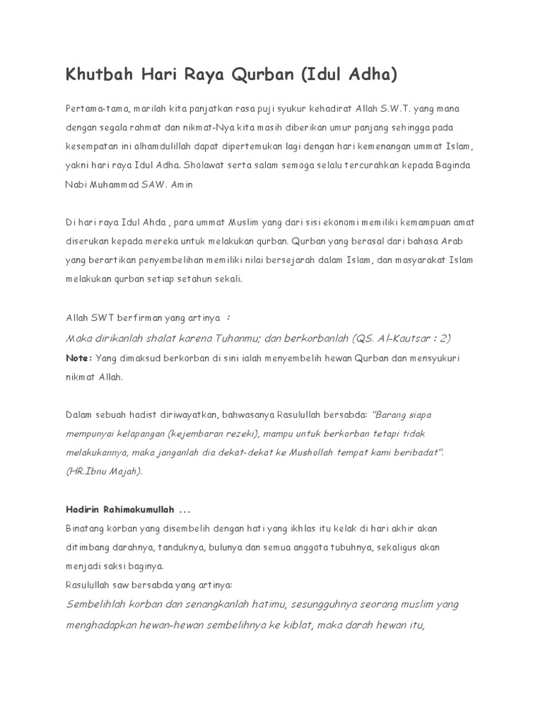 Contoh Naskah Pidato Tentang Qurban - [DOC Document]