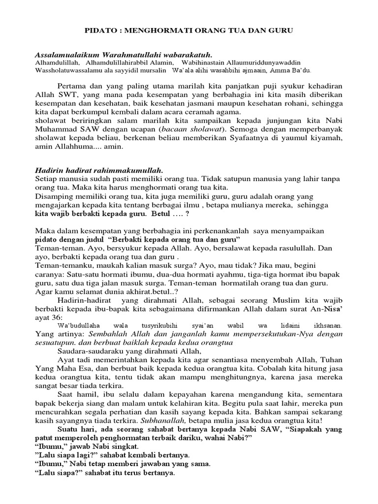 DOC) Contoh Teks Pidato Pildacil -Berbakti Kepada Orang Tua | Henny Rosa - Academia.edu
