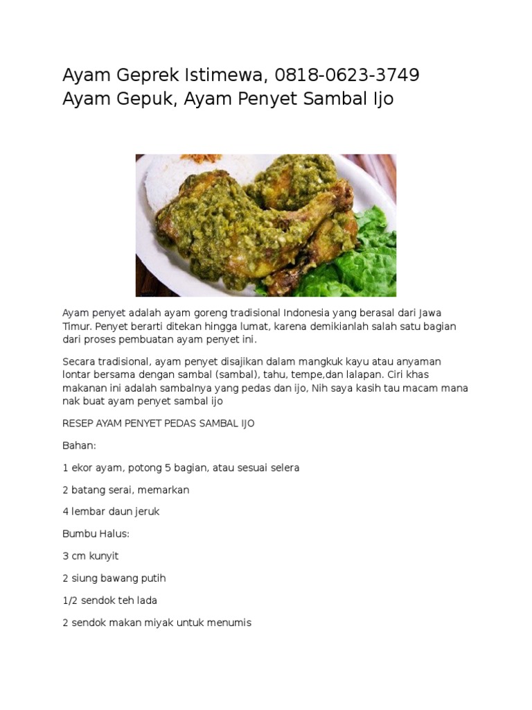 Ayam Geprek Istimewa, 0818-0623-3749 Ayam Gepuk, Ayam Penyet Sambal Ijo