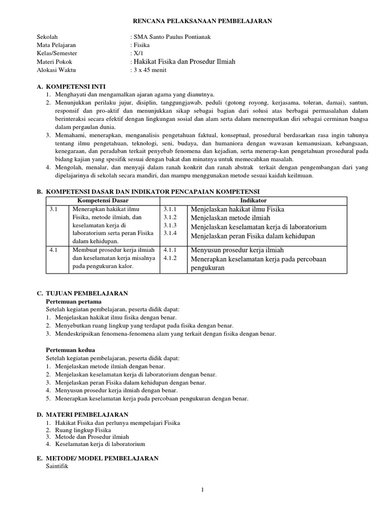 10_RPP Fisika SEM 1_KD 3.1 - Hakikat Fisika Dan Prosedur Ilmiah