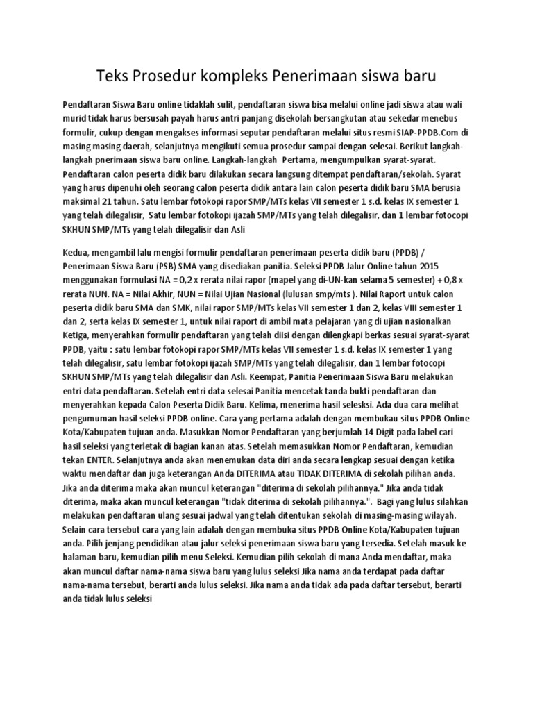 Teks Prosedur Kompleks Tentang Penerimaan Siswa Baru