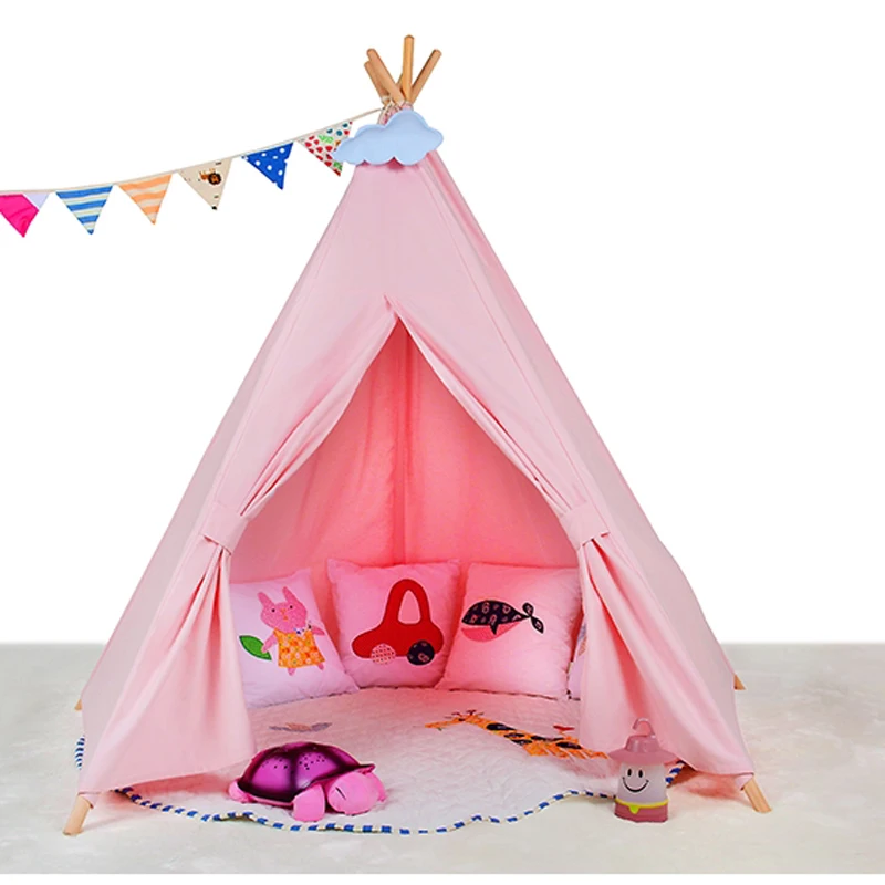 Merah muda anak anak teepee tidur tenda teepee anak bermain tenda kain putih indoor dan outdoor|kids play tent|play tentchildren bed tent - AliExpress