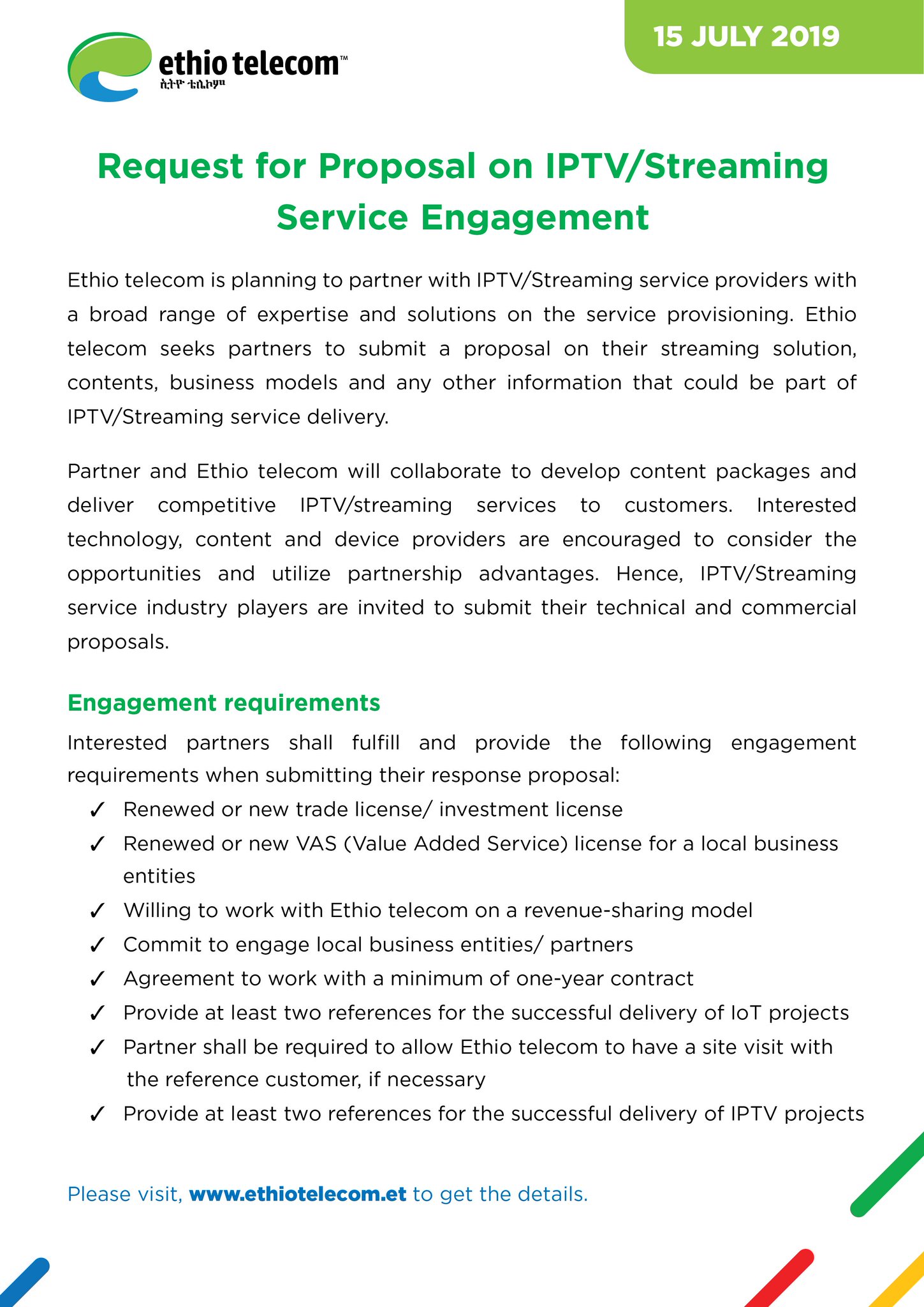 Ethio telecom on Twitter: “Request for Proposal on IPTV/Streaming Service Engagement Read the details on https://t.co/4Pi8rPufMU #Ethiotelecom #Ethiopia… https://t.co/Boh4yohMw5”