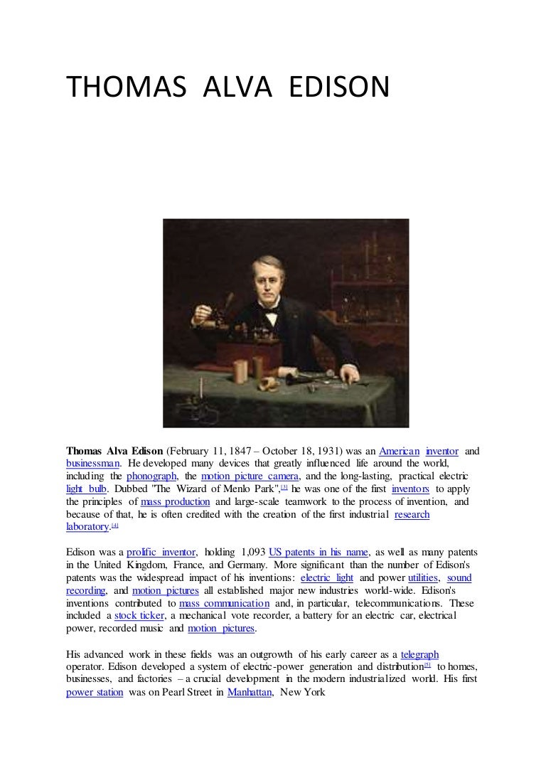 Essay Scientist Thomas Alva Edison | Zqkqgb.nasantada.info