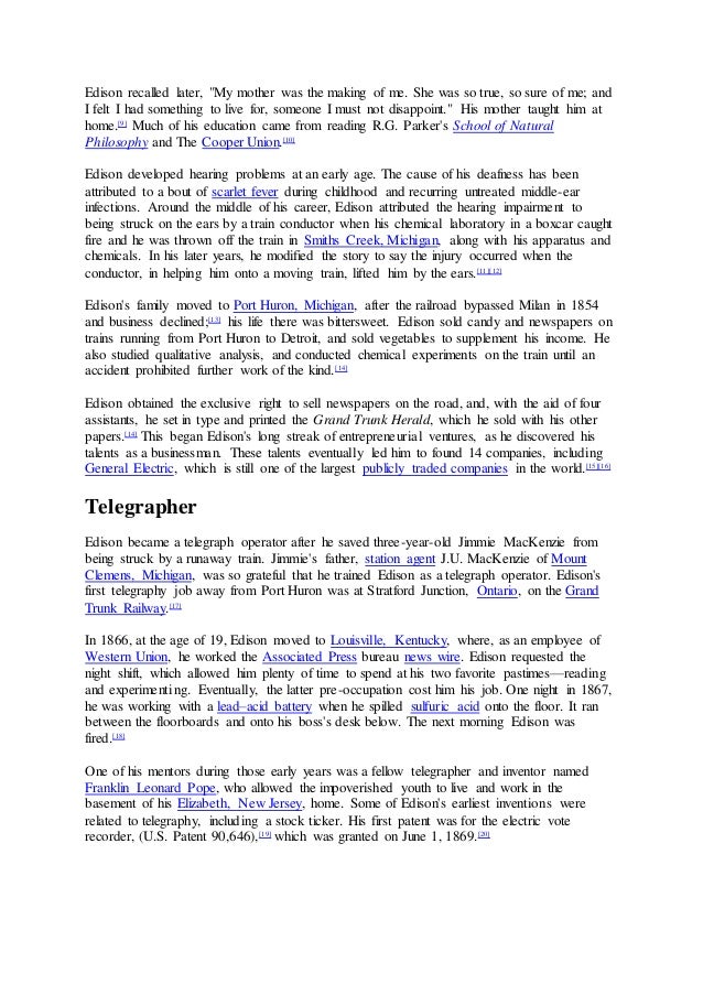 Thomas Edison Childhood Events Essays | Cwqvar.keomaktyu.info