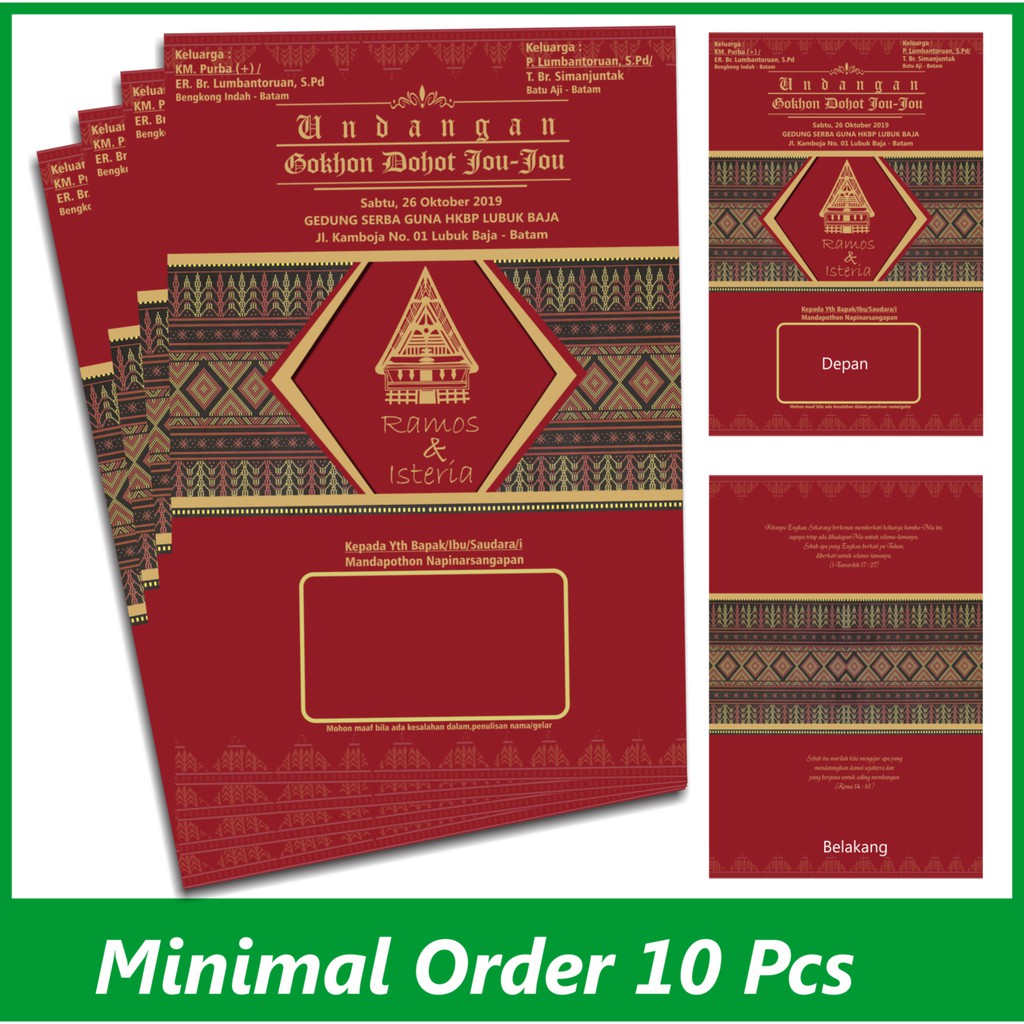 UNDANGAN BATAK MINIMAL ORDER 10 LEMBAR | Shopee Indonesia