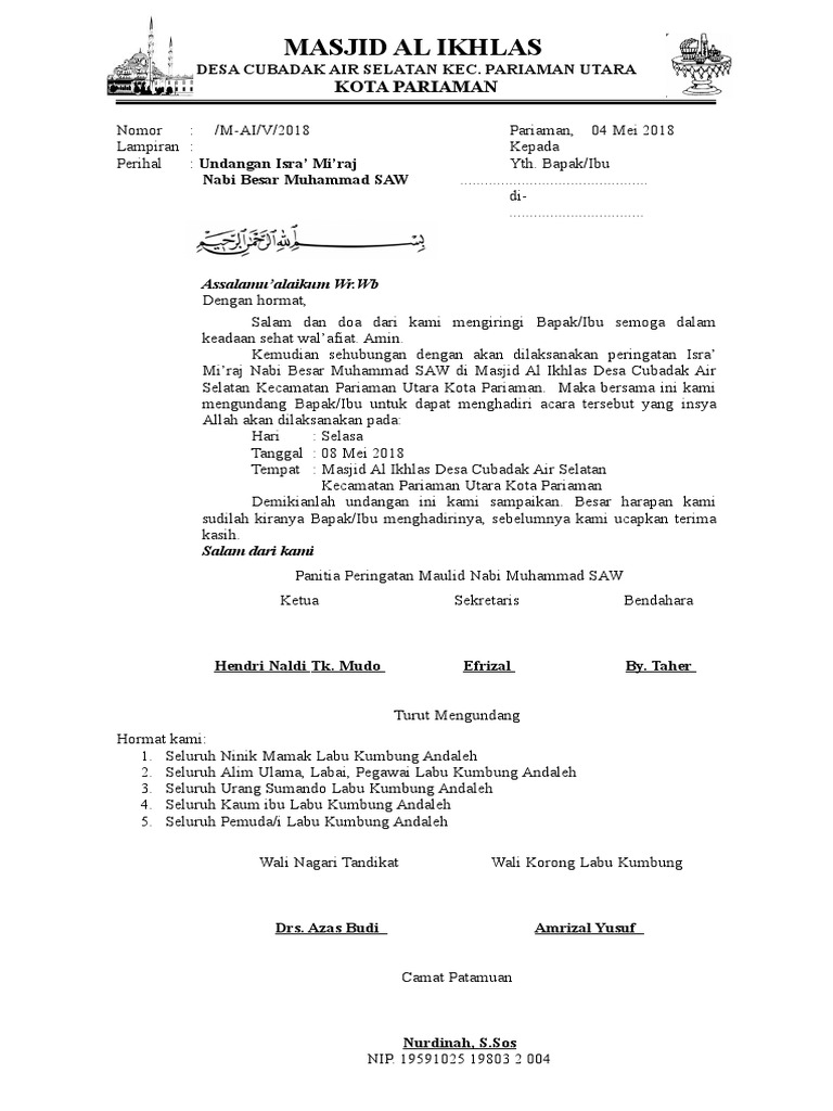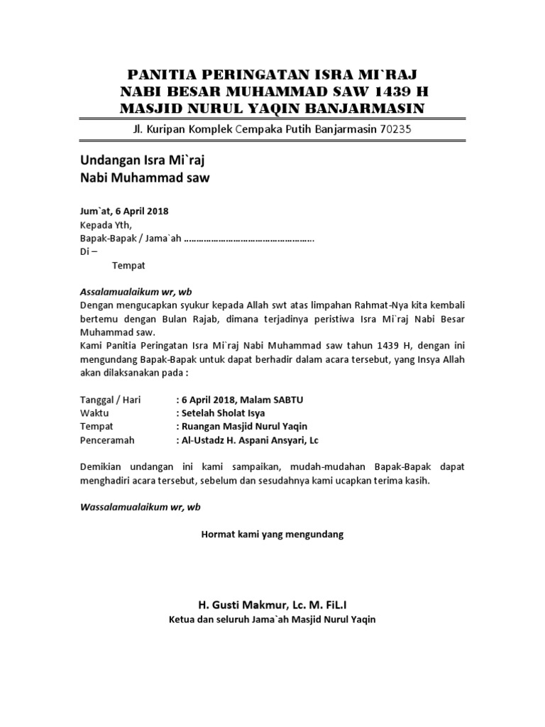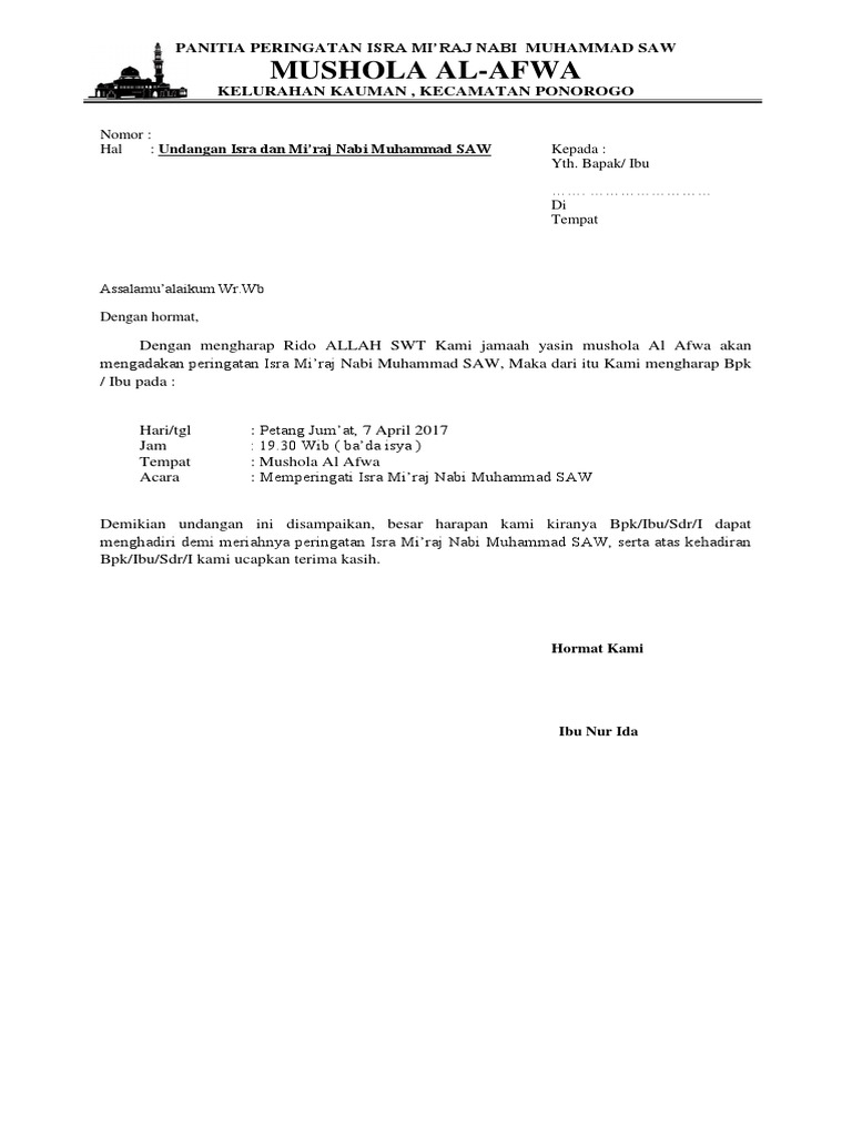 Contoh Surat Undangan Isra Miraj Nabi Muhammad SAW - Blog Kang Hamzah