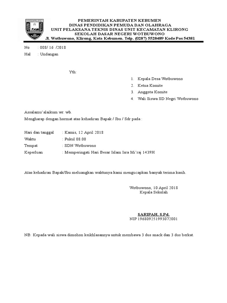 CONTOH SURAT UNDANGAN PERINGATAN ISRA DAN MI’RAJ NABI MUHAMMAD SAW - husnuls492.com
