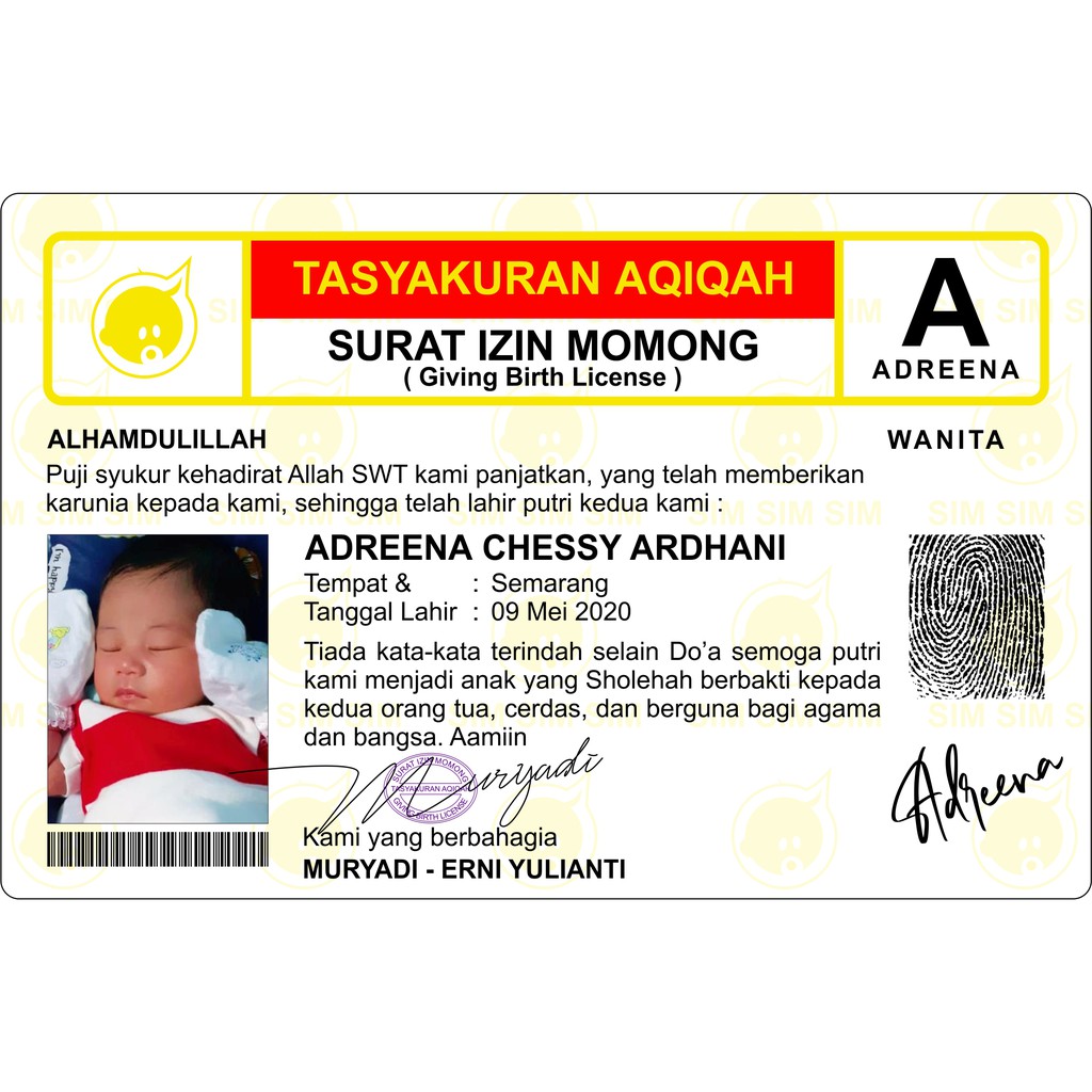 Kartu Ucapan Aqiqah Unik Model SIM 1 muka | Shopee Indonesia
