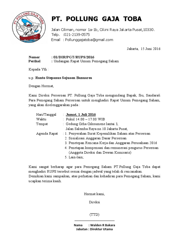 Contoh Surat Undangan Rapat Umum Pemegang Saham - Contoh Seputar Surat