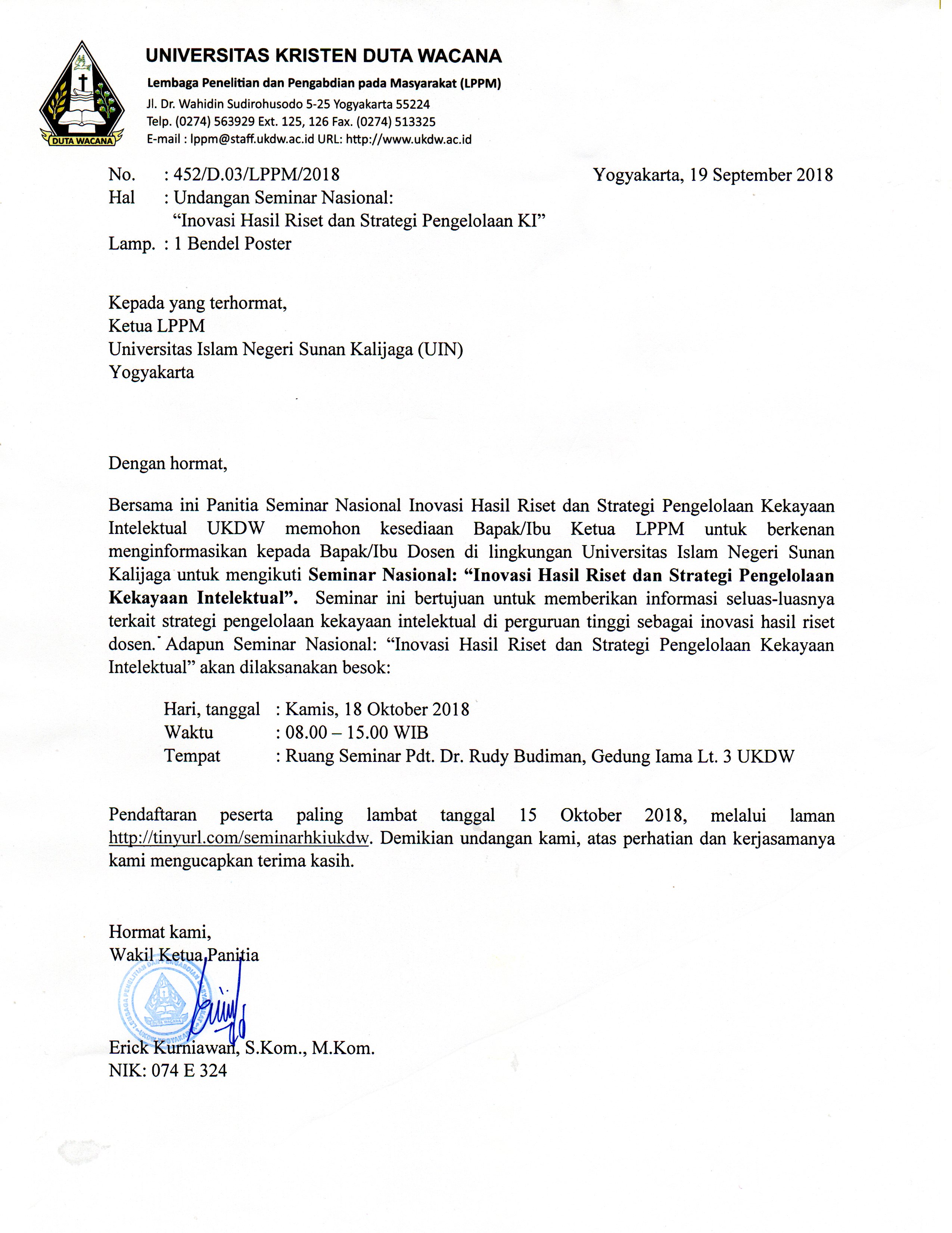 Contoh Surat Undangan Seminar Nasional - Sample Surat Undangan