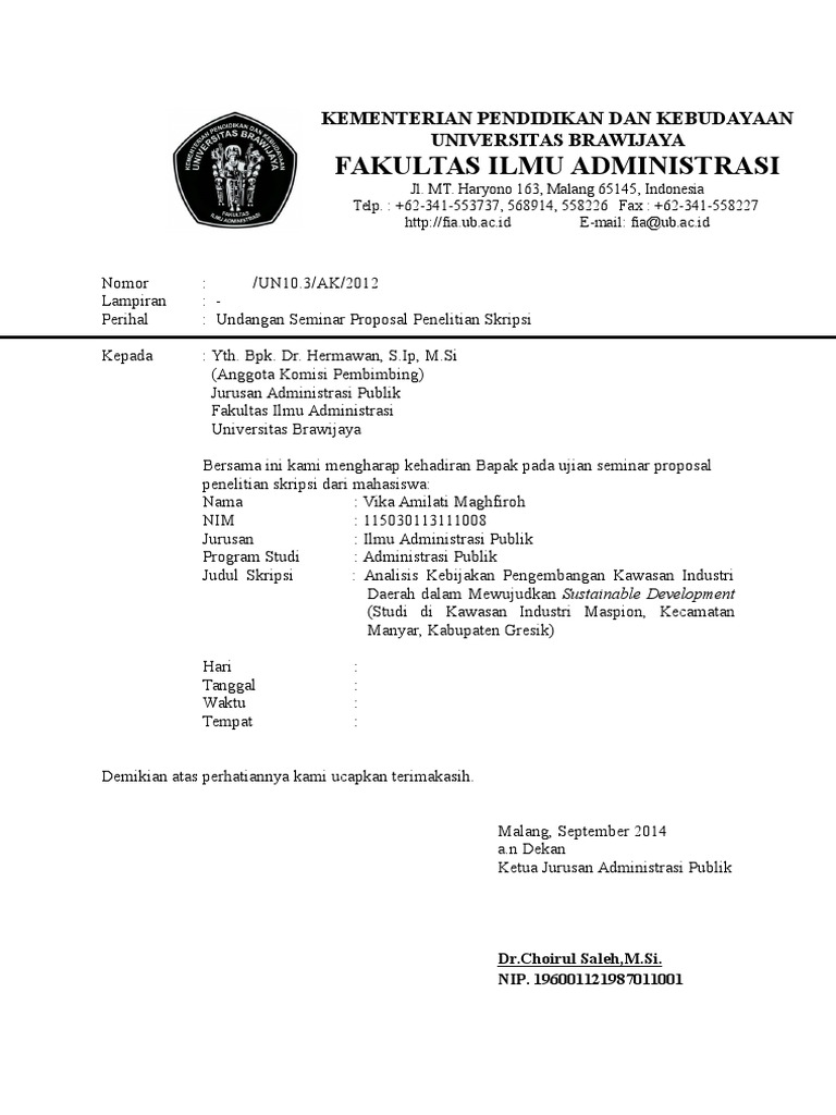 Contoh Surat Undangan Seminar Proposal Penelitian - Irvanhermawanto