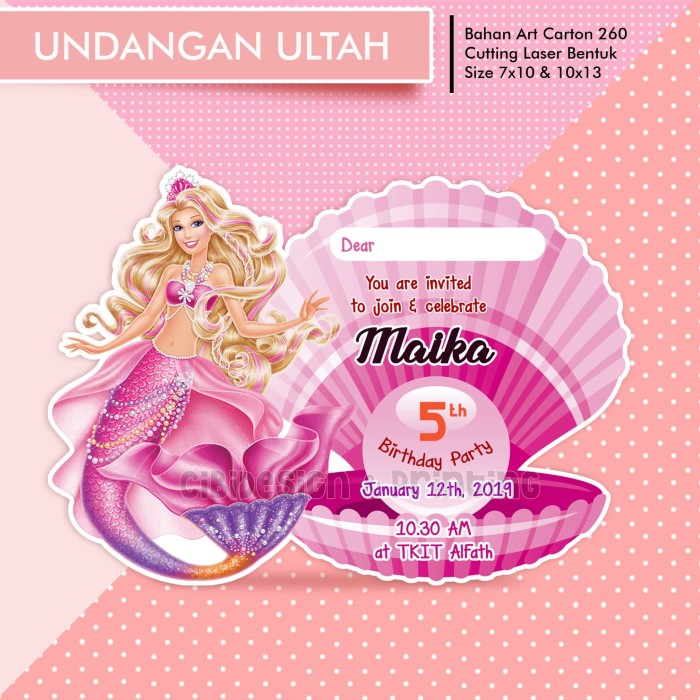 Jual Undangan Ultah / Ulang Tahun Unik Lucu Barbie Mermaid Die Cutting - 7x10cm - Kab. Bogor - cibidesign | Tokopedia