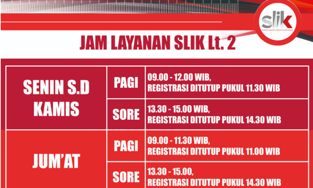 OJK Indonesia on Twitter: “#SobatOJK, Layanan pemberian informasi debitur kepada masyarakat kini telah dibuka serentak di Kantor Pusat dan KR/KOJK pada tanggal 2 Januari 2018 lho! Informasi yang diberikan melalui SLIK yaitu