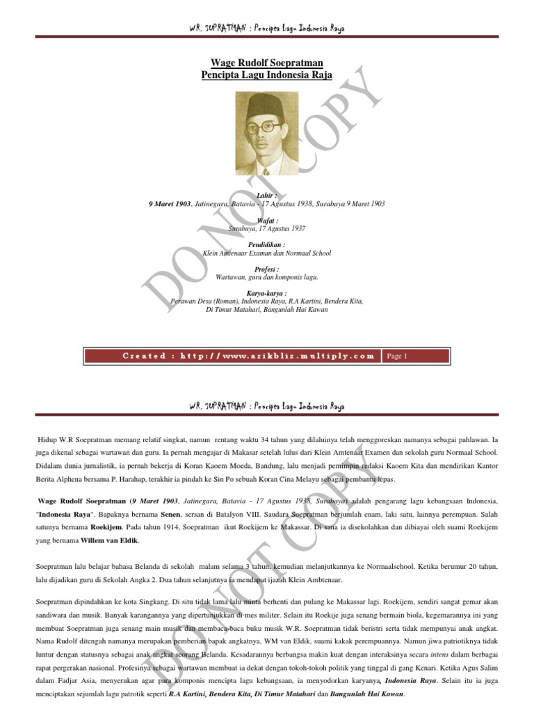 DOC) BIOGRAFI Wage Rudolf Soepratman | Grefirza Bestrofala - Academia.edu