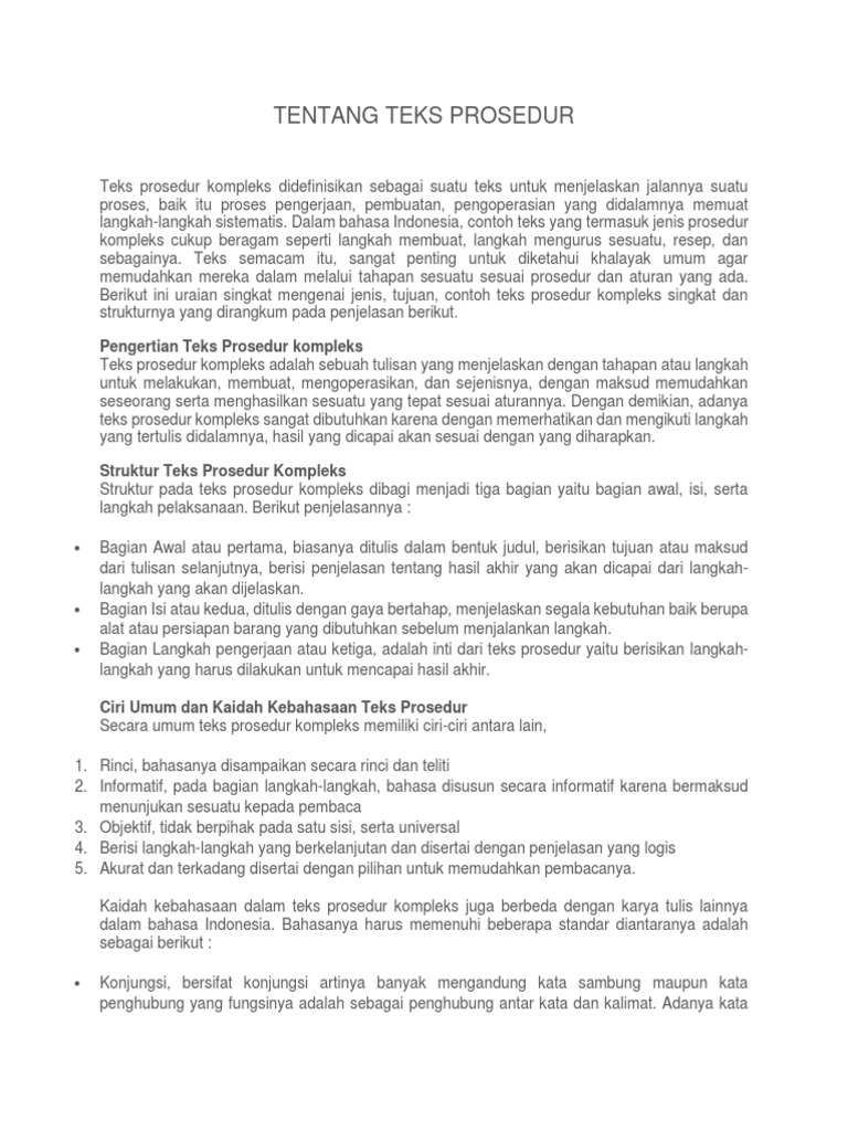 Teks Prosedur Kompleks (Pengertian, Tujuan, Struktur, Kaidah Kebahasaan, Dan Contoh Teks Prosedur) – Anto Tunggal