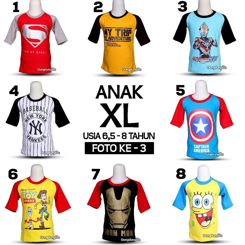 Baju Kaos Raglan Anak Cowok Laki Laki Motif Karakter Superhero Pakaian Atasan XL 7 - 8 Tahun | Shopee Indonesia