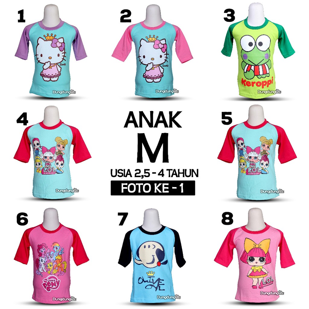 Baju Kaos Raglan Anak Cewek Perempuan Motif Karakter Kartun Pakaian Atasan M 3 - 4 Tahun | Shopee Indonesia