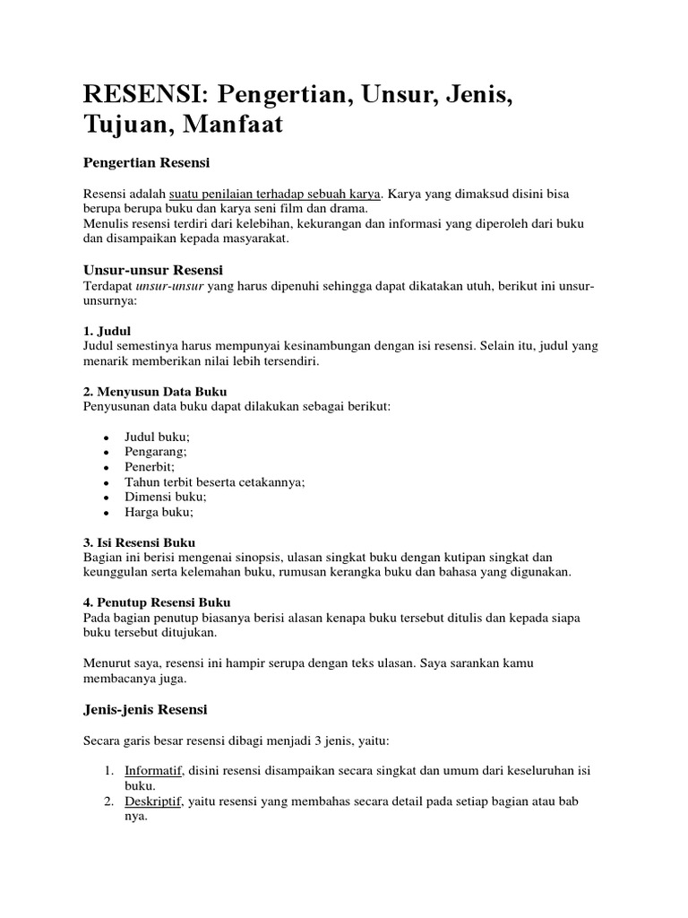 DOC) Resensi adalah suatu tulisan atau ulasan mengenai nilai sebuah hasil karya atau buku | Hilal Habib - Academia.edu