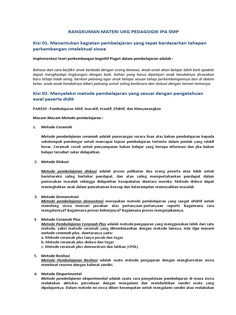 Rangkuman Materi Ukg Pedagogik Ipa Smp