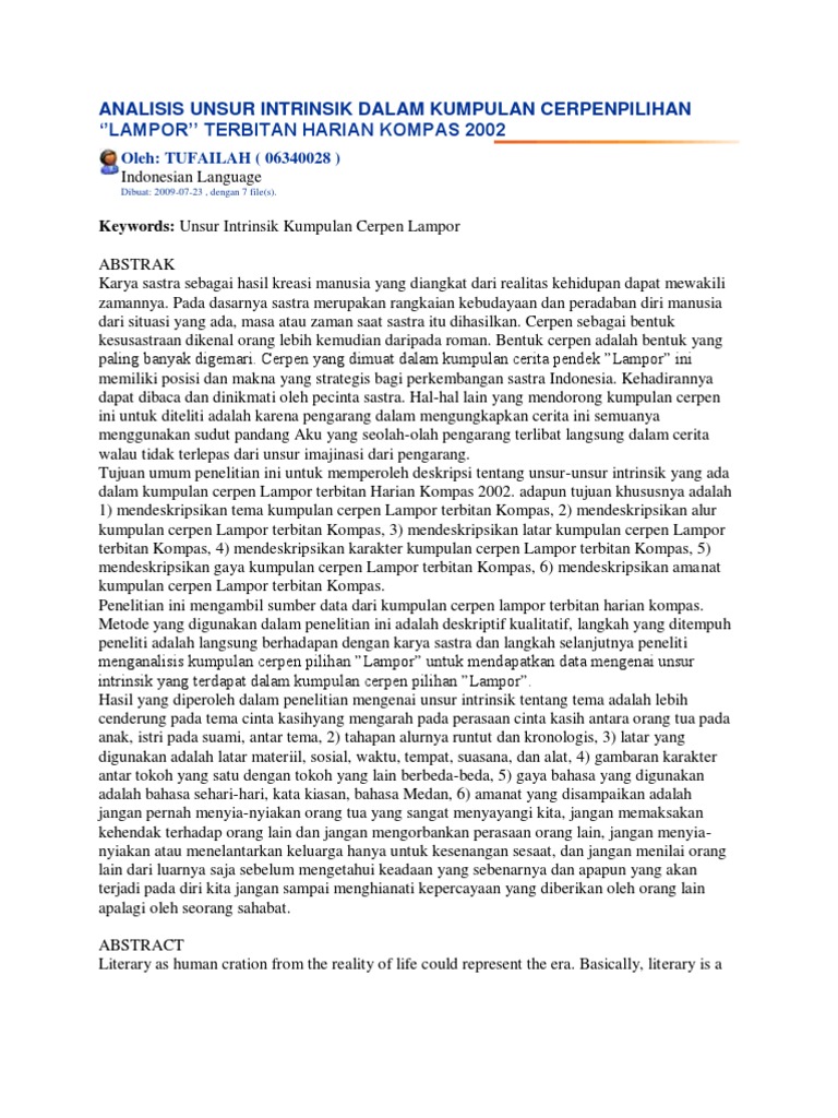 Analisis Unsur-unsur Intrinsik dan Extrinsik Cerpen Kompas by …