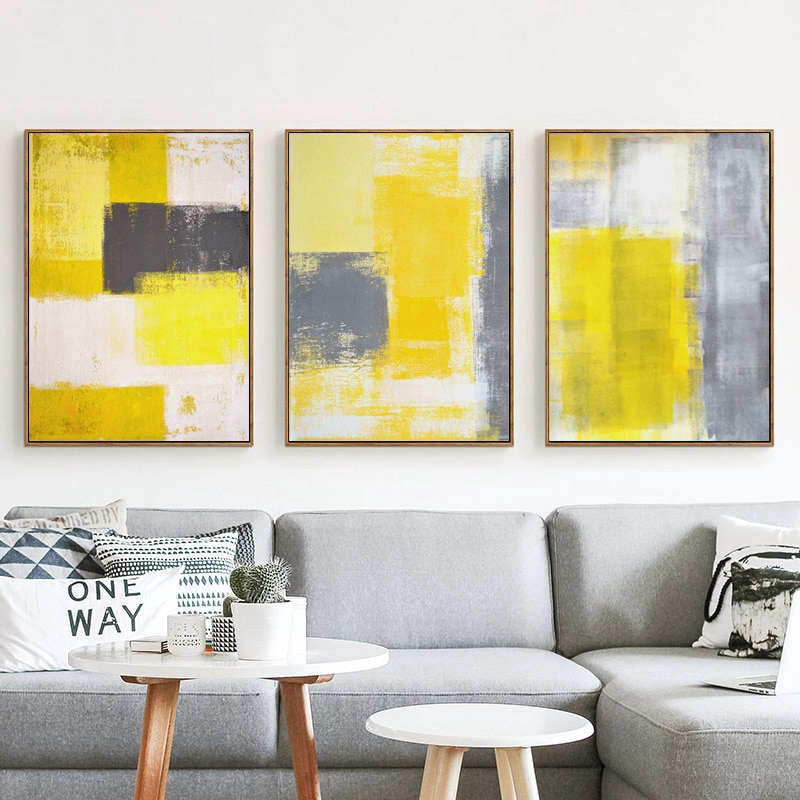 Abstract Paint Yellow Gray and White Canvas Painting Art Print …