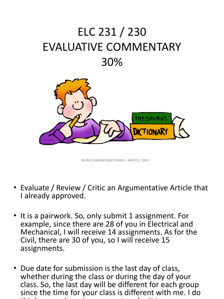 Elc231 Evaluative Commentary | Sentence (Linguistics) | Paragraph