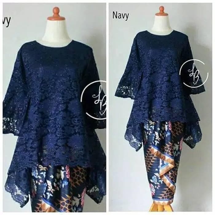 Stelan Atasan Blouse Kebaya Batwing Dan Rok Lilit Wanita Jumbo Long Skirt Nadya - Navi | elevenia