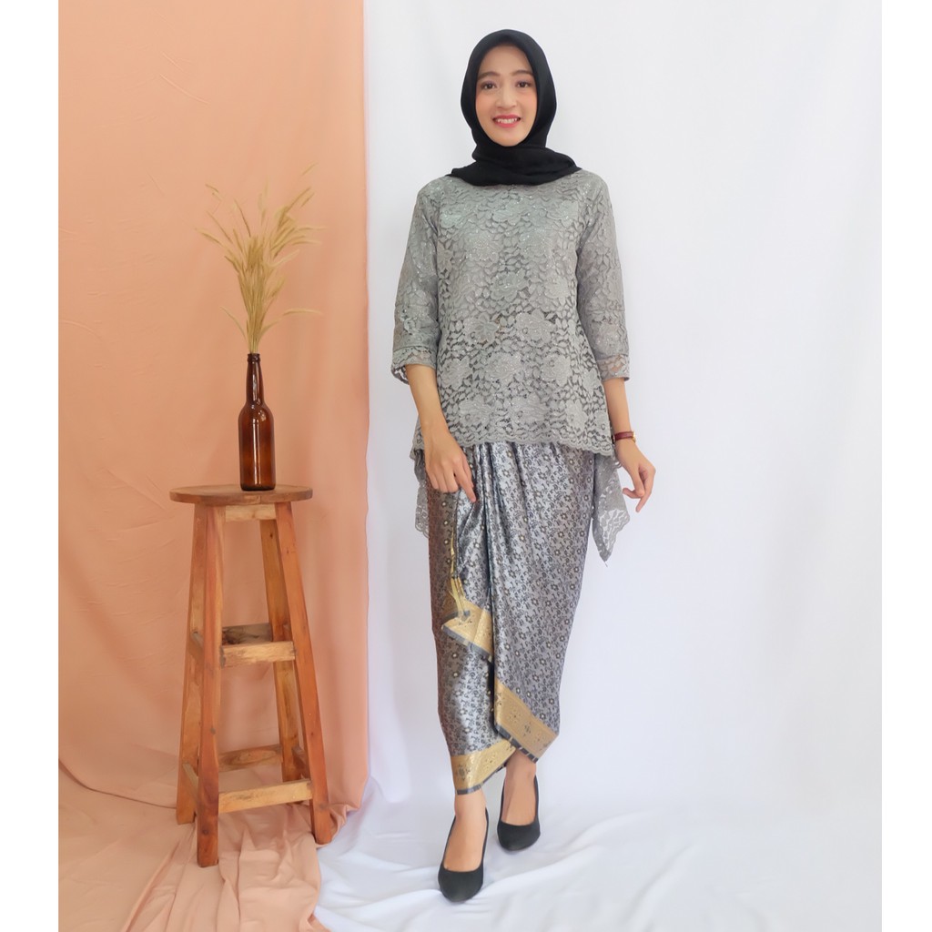 EASTERN.ID - Kebaya Nova Silver | Atasan/Setelan Kebaya Modern Brukat/Brokat dan Rok Lilit | Shopee Indonesia