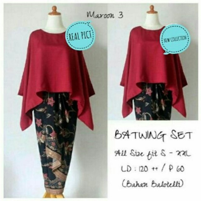 Jual Stelan Kebaya AX Atasan Blouse Kebaya Batwing Jumbo dan Rok Lilit Maxi - Kota Tangerang - U_Fashion | Tokopedia