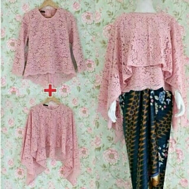 Setelan Kebaya Atasan Cape Brokat Cape Brukat Panjang Rok Lilit Satin Wisuda Kondangan Lengkap Murah | Shopee Indonesia