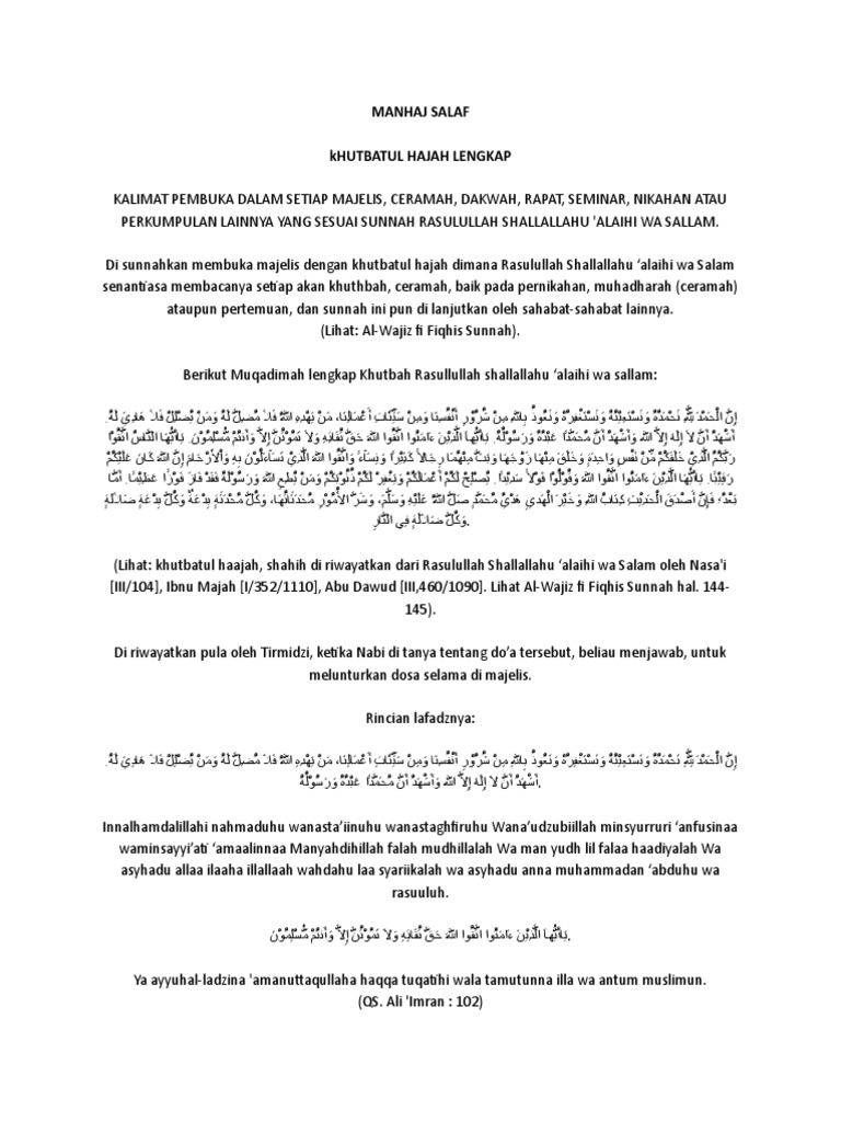 Khutbatul Hajah -Manhaj Salaf – agamaitunasehatblog