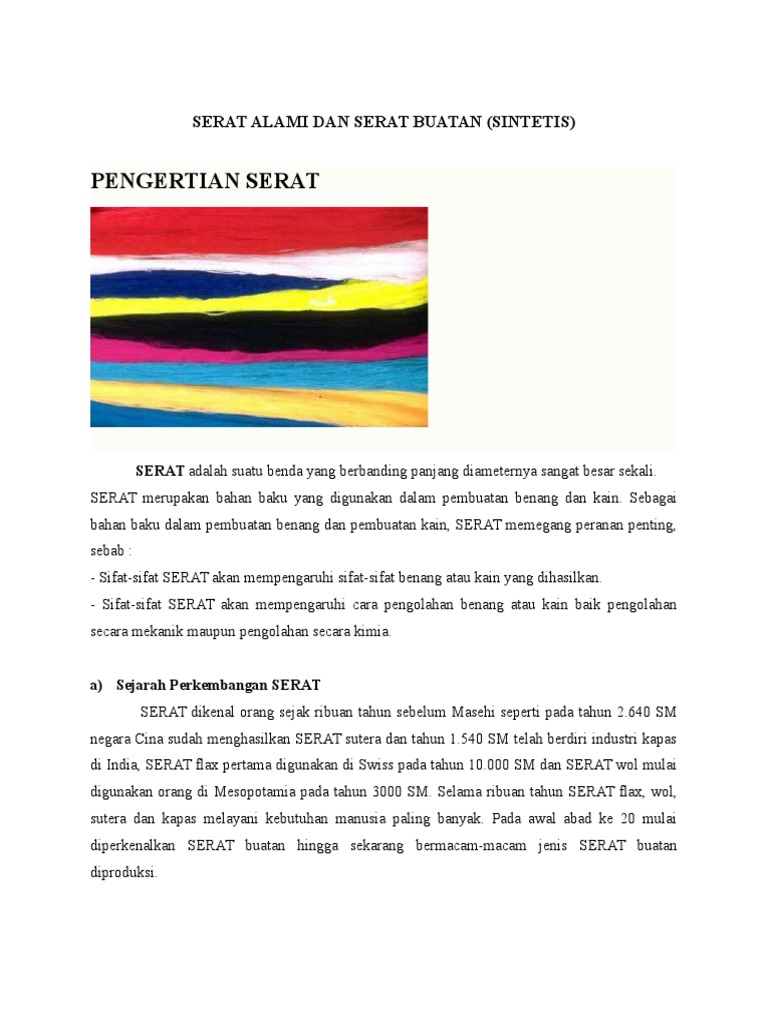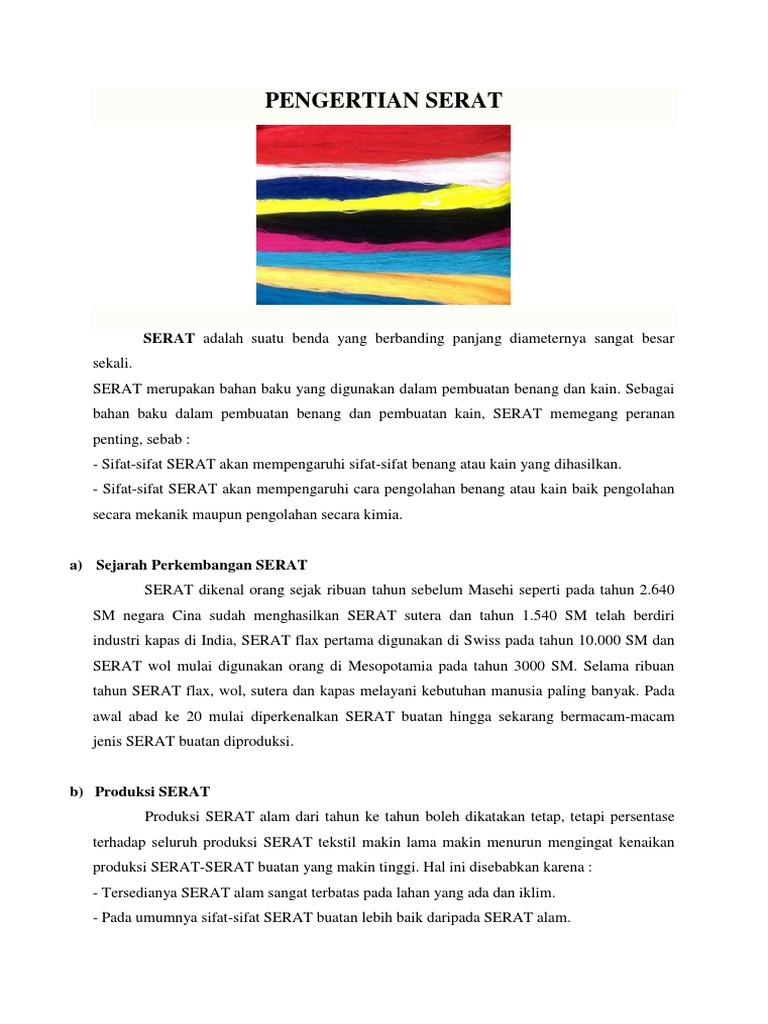Pengertian Serat Alam Bahan serat adalah suau jenis bahan berupa potongan – potongan komponen yang membentuk jaringan memanjang yang utuh. Menurut kamus.… | Amazing
