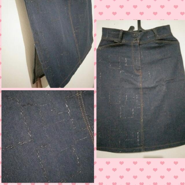 Rok Bahan Jeans Stretch Ada Motif Di Kain, Fesyen Wanita, Pakaian …
