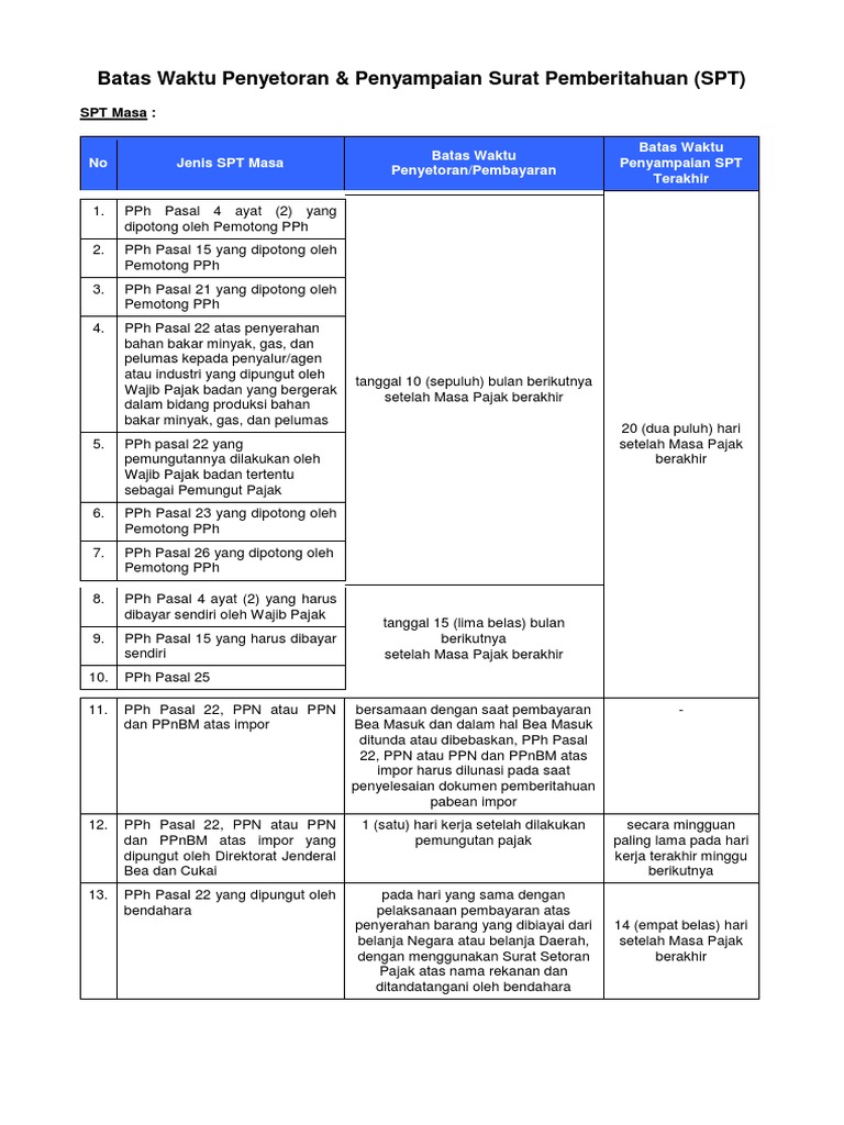 DOC) Batas Waktu Pembayaran/Penyetoran dan Pelaporan SPT Masa dan …